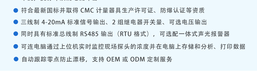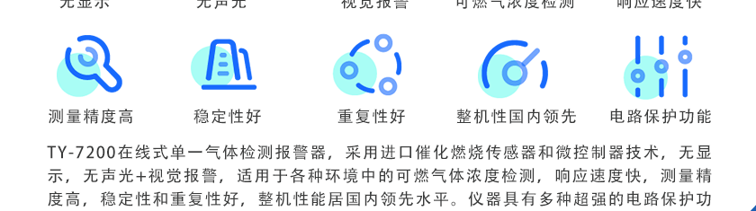 采用進口催化燃燒傳感器和微控制器技術,帶2.5寸高清彩屏實時顯示,帶聲光+視覺報警,現(xiàn)場多種氣體濃度 24 小時連續(xù)在線監(jiān)測及溫濕度的測量,適用于各種環(huán)境中的可燃氣體濃度檢測,響應速度快,測量精度高,穩(wěn)定性和重復性好,整機性能居國內(nèi)領先水平。儀器具有多種超強的電路保護功能,可防止錯接電源、反接電源、電源短路、電源不穩(wěn)、電源與信號錯解等,導致的儀器損壞。