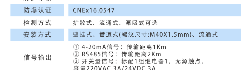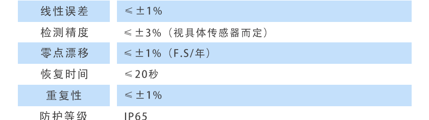 ①4-20mA信號:傳輸距離1Km ②RS485信號:傳輸距離2Km |