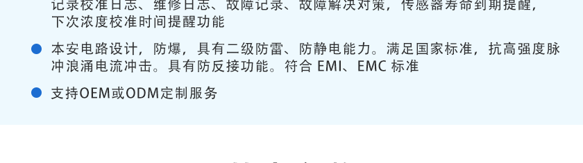 CO(0.1ppm)、H2S(0.01ppm)、O2(0.01%Vol)、Ex(0.1%LEL),