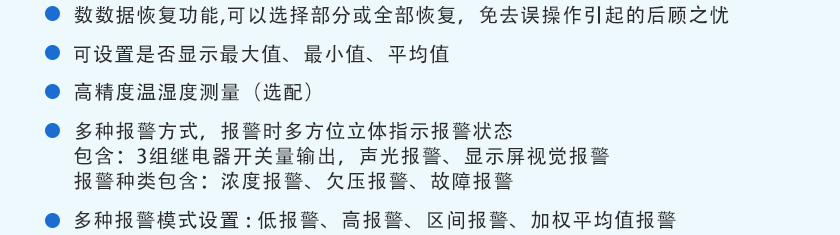 選配/最多可同時檢測任意4~6種氣體和溫濕度