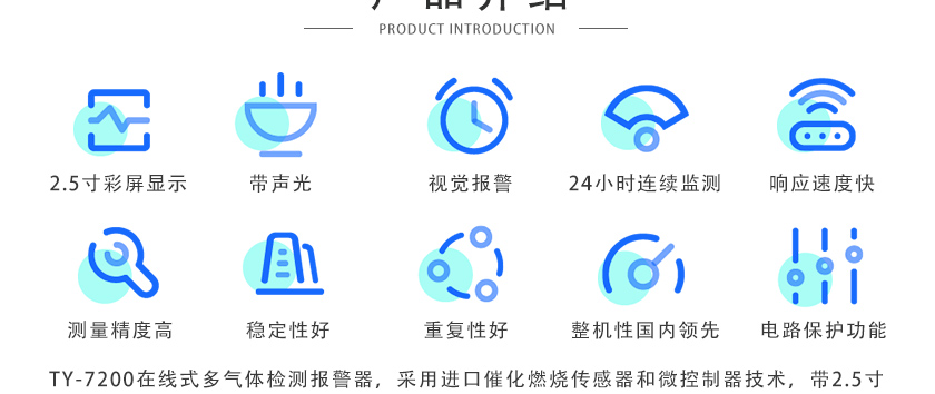 • 在線式單一氣體檢測報警器(帶顯示帶報警) TY-7200 采用進口催化燃燒傳感器和微控制器技術,帶1.7寸高清彩屏顯示,帶聲光+視覺報警,適用于各種環境中的可燃氣體濃度檢測,響應速度快,測量精度高,穩定性和重復性好,整機性能居國內領先水平。