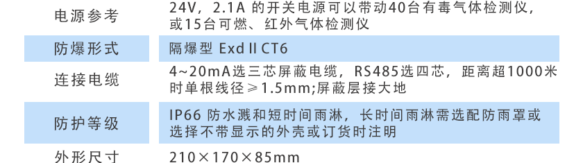 24V,2.1A 的開關電源可以帶動40臺有毒氣體檢測儀,或15臺可燃、紅外氣體檢測儀