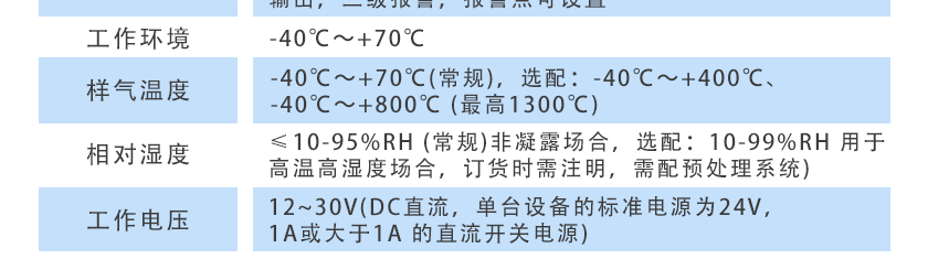 -40℃~+70℃(常規),選配:-40℃~+400℃、-40℃~+800℃