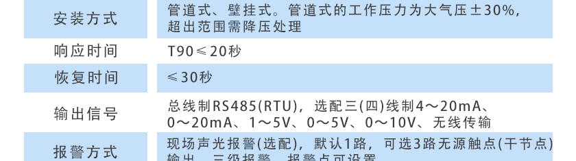 固定式安裝,在線檢測,擴散式測量,管道式、流通式、泵吸式可選