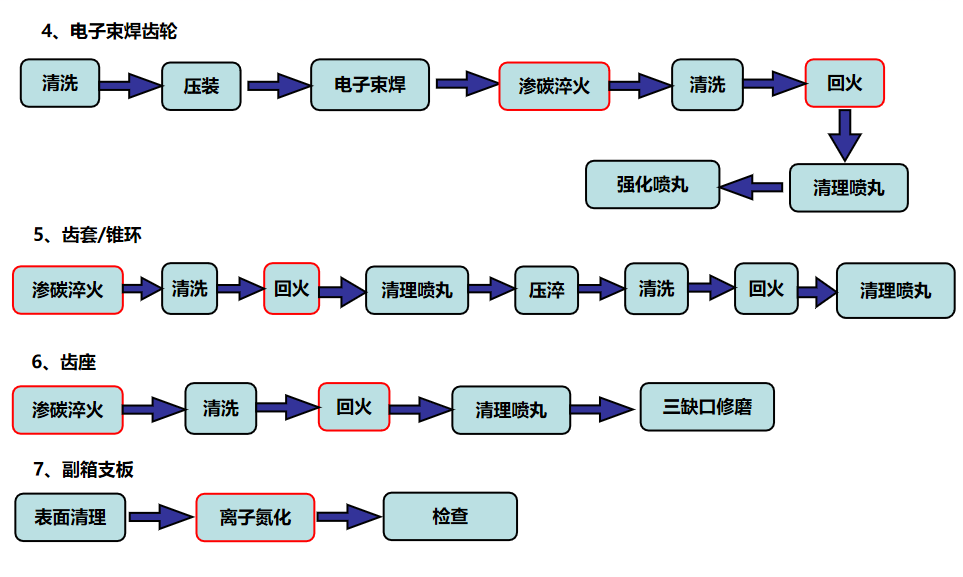在生產中,一般常把熱處理分為預備熱處理和最終熱處理兩類。一般比較重要的零件制造過程大致是: