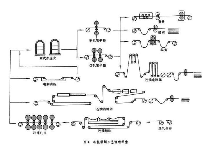 與熱軋相比,冷軋廠的加工線比較分散,工藝流程上也不夠連續,由于冷軋過程中會造成鋼材成型不夠均勻,導致殘余應力產生,最終形成加工鋼材硬度較大的結果,影響所制造產品的質量和穩定性。冷軋產品主要有普通冷軋板、涂鍍層板也就是鍍錫板鍍鋅板彩涂板。經過熱軋廠送來的鋼卷,先要經過連續三次技術處理,先要用鹽酸除去氧化膜,然后才能送到冷軋機組。冷軋主要用于生產尺寸較小的精密鋼,一般鋼的軋制以熱軋為主。