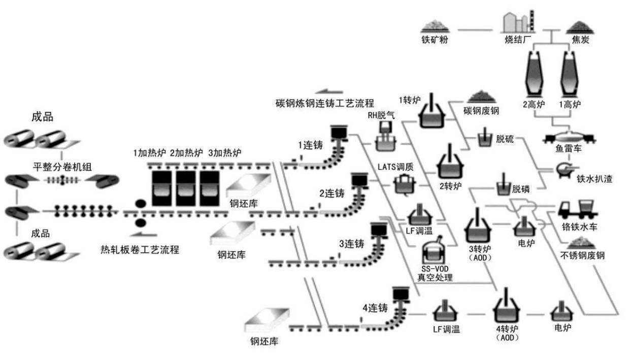 從煉鋼廠出來的鋼坯還僅僅是半成品,必須到軋鋼廠去進行軋制以后,才能成為合格的產品。從煉鋼廠送過來的連鑄坯,首先是進入加熱爐,然后經過初軋機反復軋制之后,進入精軋機。軋鋼屬于金屬壓力加工,說簡單點,軋鋼板就像壓面條,經過搟面杖的多次擠壓與推進,面就越搟越薄。在熱軋生產線上,軋坯加熱變軟,被輥道送入軋機,最后軋成用戶要求的尺寸。軋鋼是連續的不間斷的作業,鋼帶在輥道上運行速度快,設備自動化程度高,效率也高。熱軋成品分為鋼卷和錠式板兩種,經過熱軋后的鋼軌厚度一般在幾個毫米,如果用戶要求鋼板更薄的話,還要經過冷軋。