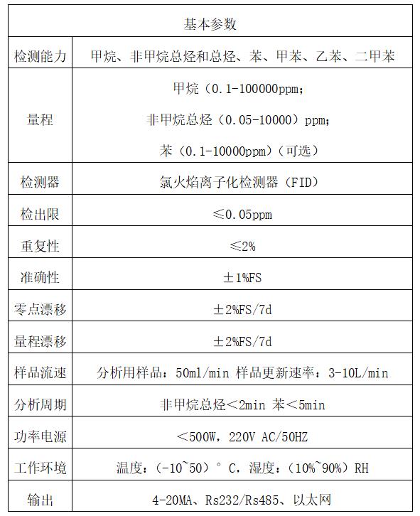 天禹VOC在線(xiàn)檢測(cè)系統(tǒng)主要性能參數(shù)