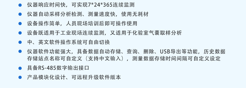 (7)儀器響應時間快,可實現7*24*365連續(xù)監(jiān)測。