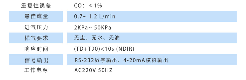 (4)分辨率:CO:0.01%(針對低量程分辨率可以達到1ppm)