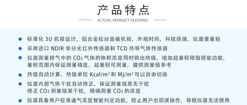 采用自主知識產(chǎn)權(quán)的NDIR非分光紅外技術(shù),主要用于測量氣體中的CO、CO2、CH4、C3H8、SO2、NO等氣體的體積濃度及熱值。全進(jìn)口傳感器、測量精度高、結(jié)構(gòu)簡單、維護(hù)方便,軟件功能強(qiáng)大,可拓展性強(qiáng)、現(xiàn)場實(shí)用性好,目前暢銷國內(nèi)外。
