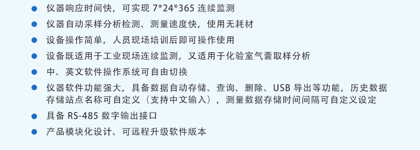 (7)儀器響應(yīng)時(shí)間快,可實(shí)現(xiàn)7*24*365連續(xù)監(jiān)測。
