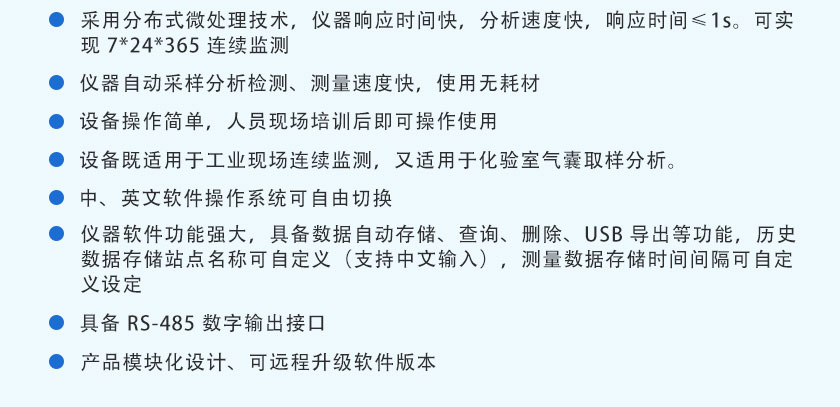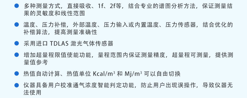 采用自主知識產(chǎn)權(quán)的NDIR非分光紅外技術(shù),主要用于測量氣體中的CO、CO2、CH4、C3H8、SO2、NO等氣體的體積濃度及熱值。全進口傳感器、測量精度高、結(jié)構(gòu)簡單、維護方便,軟件功能強大,可拓展性強、現(xiàn)場實用性好,目前暢銷國內(nèi)外。