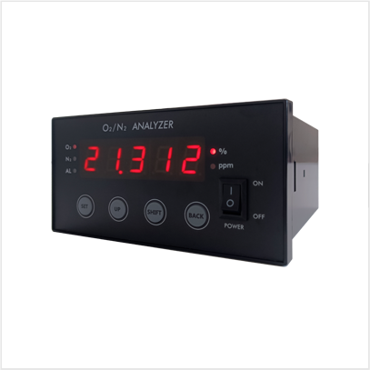 • 氧化鋯氧氣(O2)分析監測儀 采用基于氧化鋯(Zirconia)技術的傳感器,它們能在ppm等級實現出色的精度,具備快速反應時間和長壽命、無損耗等優勢。采用RS485通訊,允許執行遠程校準和獲取測量數據。經過高性能32單位片機對信號進行處理換算,直接計算出氮氧混合氣體中的氧氣濃度值,經由數碼管顯示氧氣濃度值或經推算出的氮氣濃度值。