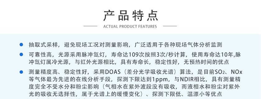 針對國內外環保在線監測分析自主研發的氣體分析產品,該分析儀基于紫外差分吸收光譜技術(DOAS)和電化學技術,能夠測量SO2、NOx、CO、CO2、O2等氣體濃度。