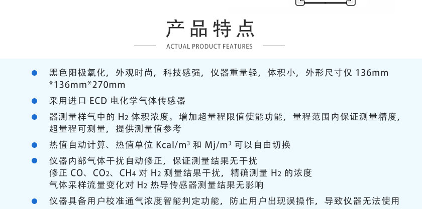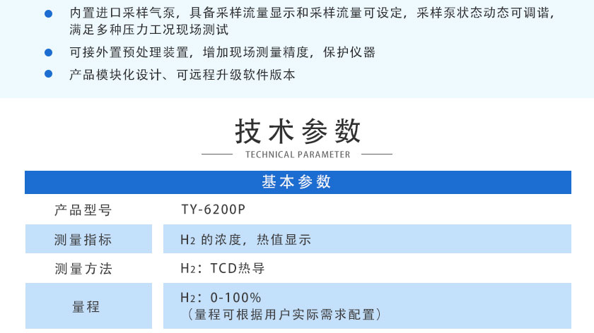 采用國際先進TCD熱導技術(shù),主要用于測量各種氣體中的H2體積濃度。