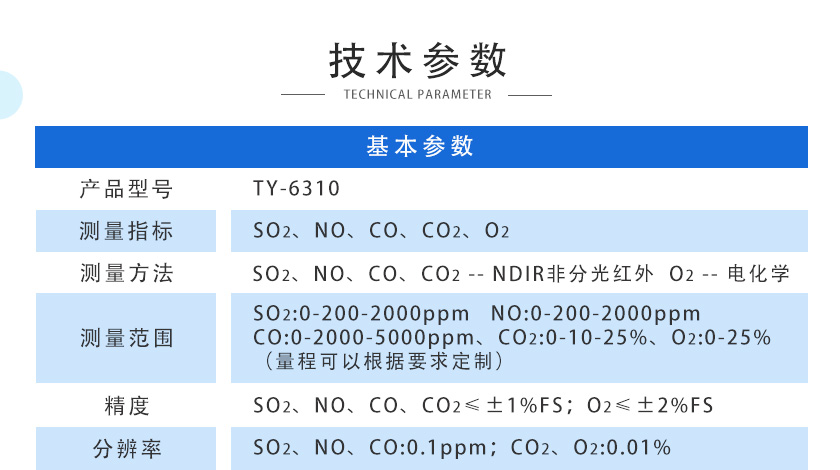 SO2:0-200-2000ppm NO:0-200-2000ppm CO:0-2000-5000ppm、CO2:0-10-25%、O2:0-25% (量程可以根據(jù)要求定制) |