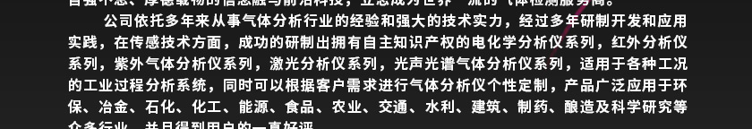采用自主知識產(chǎn)權(quán)的NDIR非分光紅外技術(shù),主要用于測量氣體中的CO、CO2、CH4、C3H8、SO2、NO等氣體的體積濃度及熱值。全進(jìn)口傳感器、測量精度高、結(jié)構(gòu)簡單、維護(hù)方便,軟件功能強(qiáng)大,可拓展性強(qiáng)、現(xiàn)場實(shí)用性好,目前暢銷國內(nèi)外。