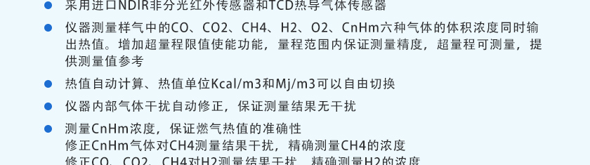 采用自主知識產(chǎn)權(quán)的NDIR非分光紅外技術(shù),主要用于測量氣體中的CO、CO2、CH4、C3H8、SO2、NO等氣體的體積濃度及熱值。全進口傳感器、測量精度高、結(jié)構(gòu)簡單、維護方便,軟件功能強大,可拓展性強、現(xiàn)場實用性好,目前暢銷國內(nèi)外。