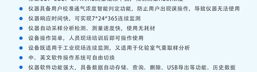 CO、CO2、CH4、C3H8、SO2、NO:0.01%(針對低量程分辨率可以達到1ppm) |