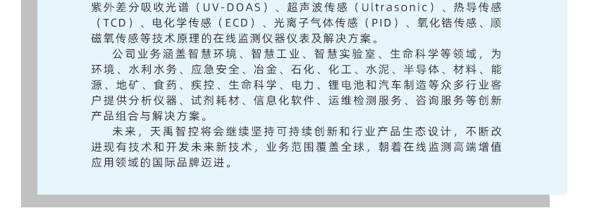 • 在線紫外氣體分析儀 TY-6400 針對國內外環保在線監測、工業在線分析自主研發的氣體分析產品。該分析儀基于紫外差分吸收光譜技術(DOAS)和化學計量學算法(PLS),能夠測量SO2、NO、NO2、O2、NH3、CO、CO2、Cl2、O3、H2S、HCl、CH3I等氣體濃度,具有測量精度高、可靠性強、運行成本低、響應時間快、量程跨度大、應用范圍廣等特點。