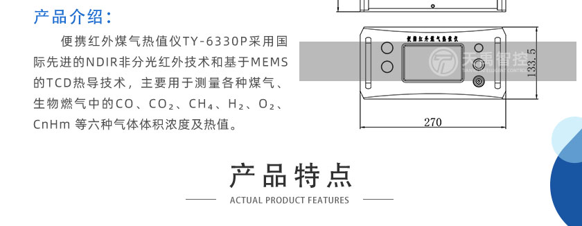 • 便攜紅外氣體分析儀 TY-6300P 采用自主知識產權的NDIR非分光紅外技術,主要用于測量氣體中的CO、CO2、CH4、C3H8、SO2、NO等氣體的體積濃度及熱值。全進口傳感器、測量精度高、結構簡單、維護方便,軟件功能強大,可拓展性強、現場實用性好,目前暢銷國內外。