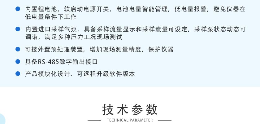 • 便攜激光氣體分析儀 TY-6500P 用國際先進的TDLAS激光技術,主要用于測量各種氣體中的HF、HCL、O2、CO、CO2、H2O、O2、NH3、CH4?等氣體體積濃度及熱值。