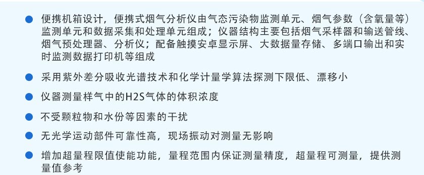該分析儀基于紫外差分吸收光譜技術(DOAS)技術,能夠測量H2S等氣體濃度。具有測量精度高、可靠性強、運行成本低、響應時間快、量程跨度大、應用范圍廣等特點。