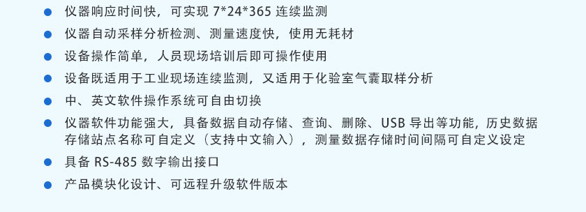 8)儀器響應時間快,可實現 7*24*365 連續監測。